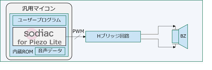 警報装置等の限られた音声発声機器向けに「Sodiac For Piezo」を更にコンパクトな設計とした音声ミドルウェア
