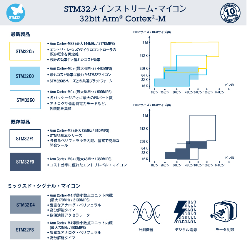 STM32メインストリーム・シリーズは、さまざまな適用分野の要件をまとめてサポートしているため、幅広いアプリケーションに適したマイコンとなっています。